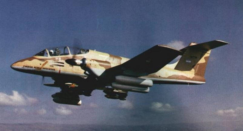 Origine:Argentina Motori:2 turboelica Turbomeca Astazou XVIG con 24 kN di spinta ciascuno Prestazioni:Velocità massima 0,45 Ma (500 km/h in quota). Autonomia 3220 km. Raggio di azione 3710 km. Tangenza 10000 m Armamento:4 mitragliatrici FN M2-20 da 7,62 mm,2 cannoni HS.804 da 20 mm. Bombe caduta libera: Mk 81,